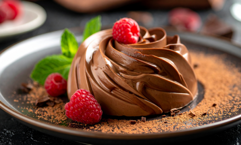 • Mousse de chocolate com crocante e finalização com coulis